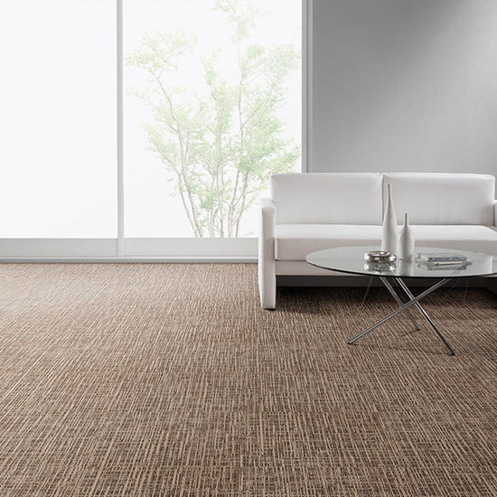 通行量の多い場所に適している「重歩行」に対応した土足OKのタイルカーペット。