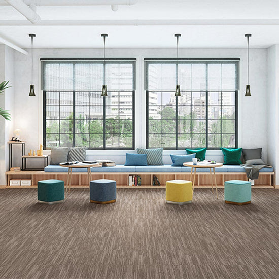 通行量の多い場所に適している「重歩行」に対応した土足OKのタイルカーペット。