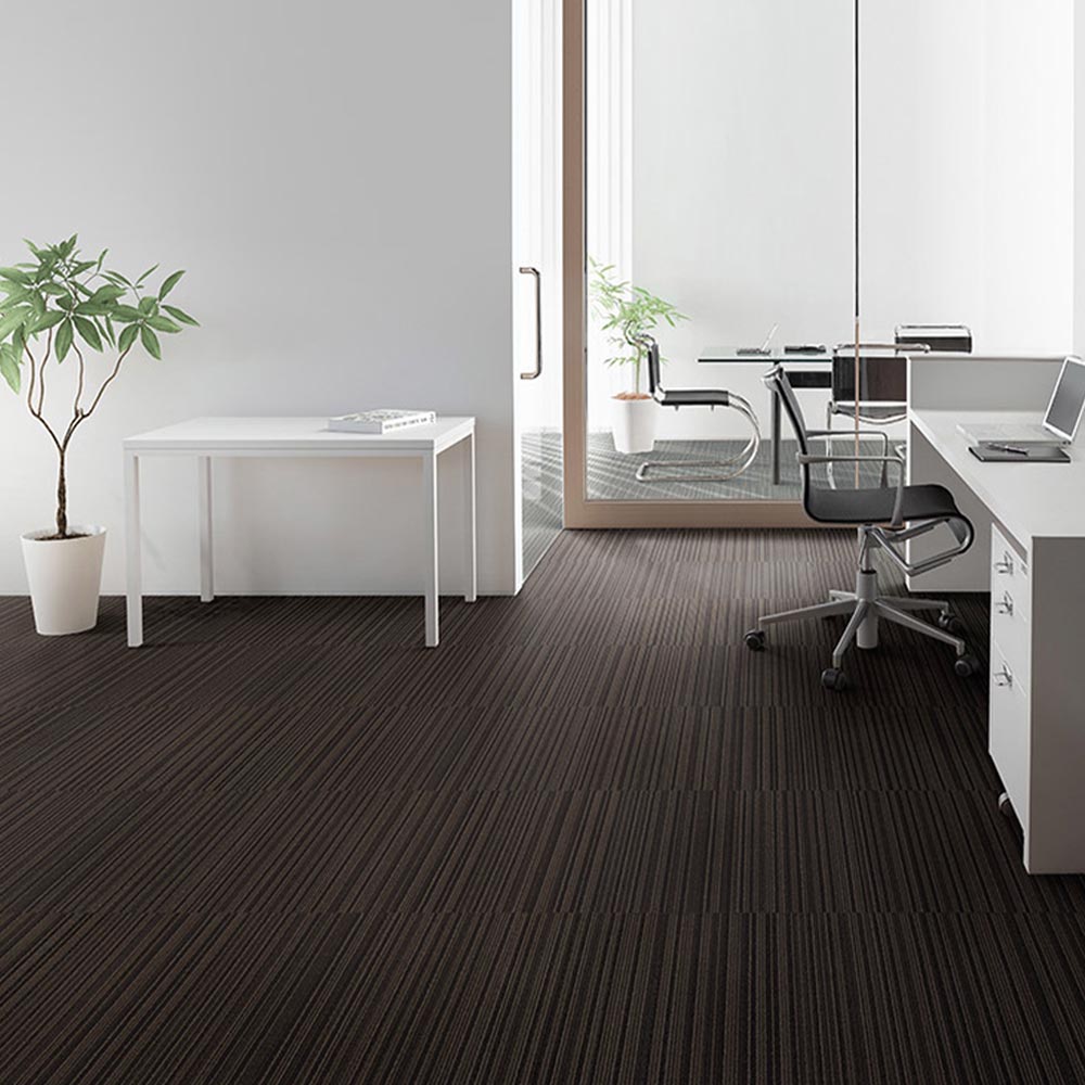通行量の多い場所に適している「重歩行」に対応した土足OKのタイルカーペット。