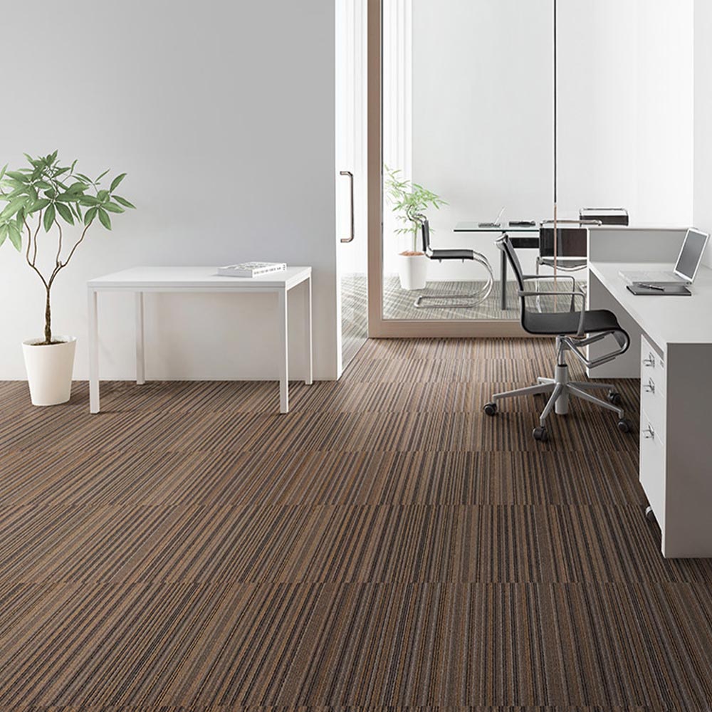 通行量の多い場所に適している「重歩行」に対応した土足OKのタイルカーペット。