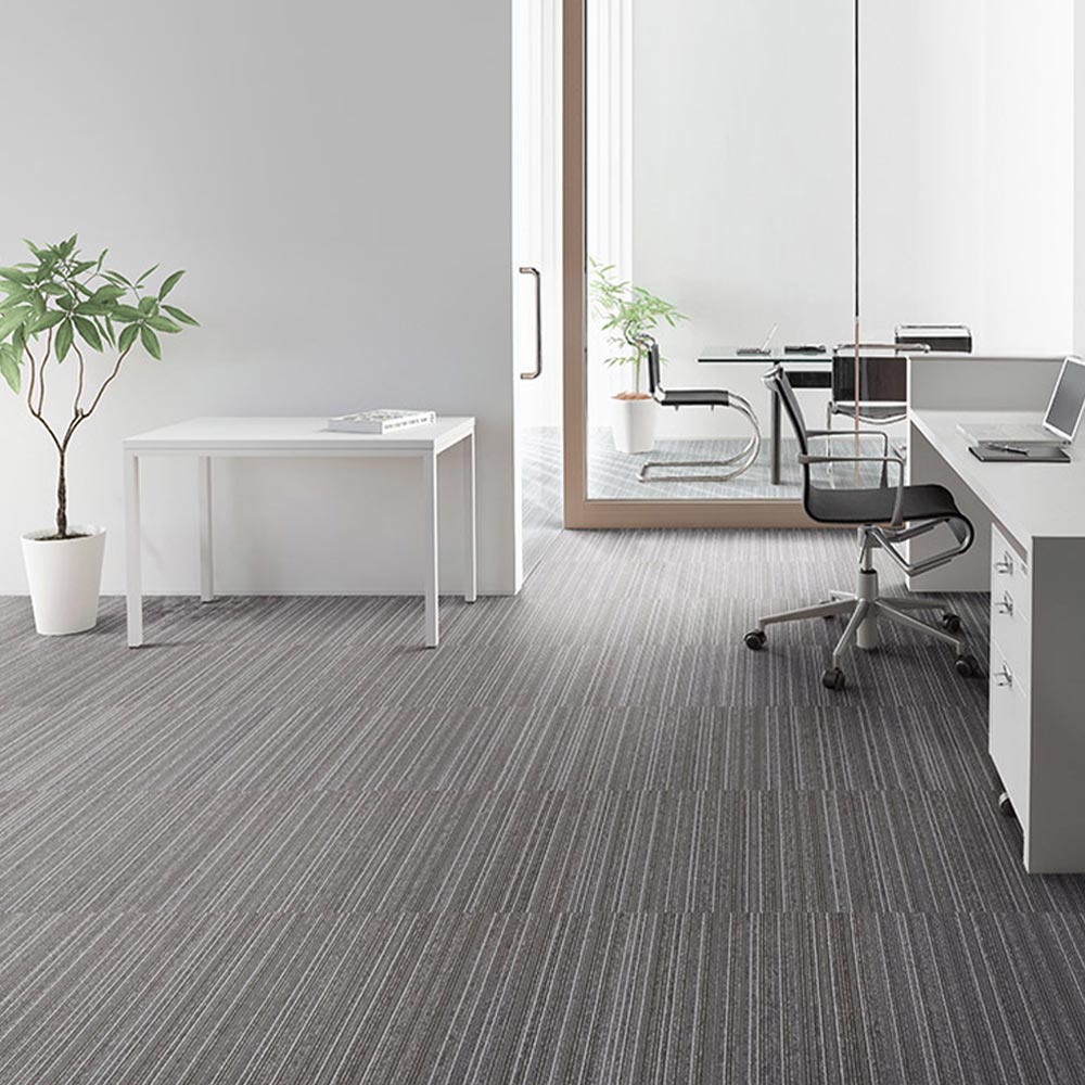 通行量の多い場所に適している「重歩行」に対応した土足OKのタイルカーペット。