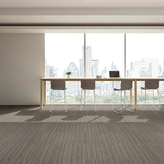シンプルで汎用性の高い、すっきりとした印象を与えるベーシックなタイルカーペットです。