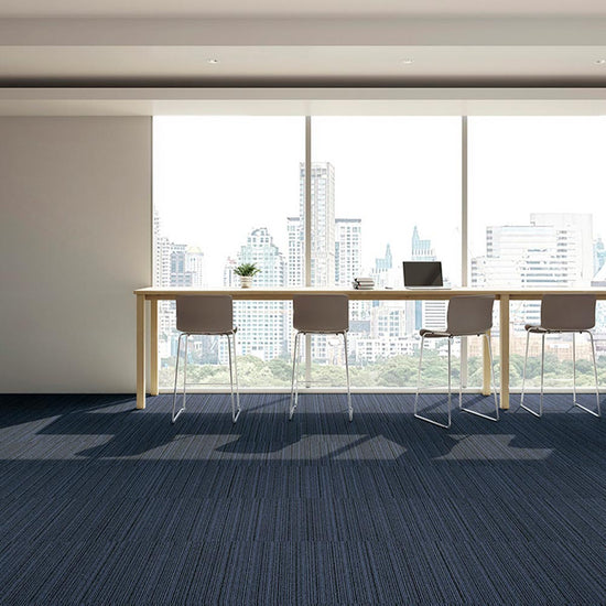 シンプルで汎用性の高い、すっきりとした印象を与えるベーシックなタイルカーペットです。