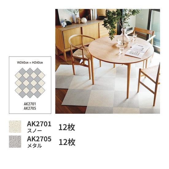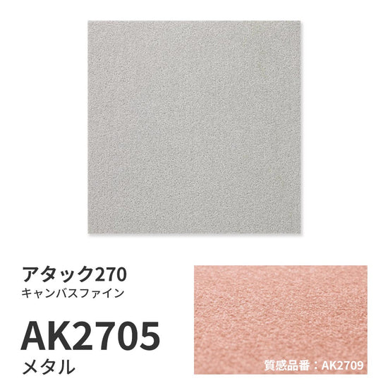 洗えるタイルカーペット 東リ ファブリックフロア アタック270 キャンバスファイン 【1ケース(10枚入)単位で販売】 AK2705 メタル 吸着タイプ 床暖房対応
