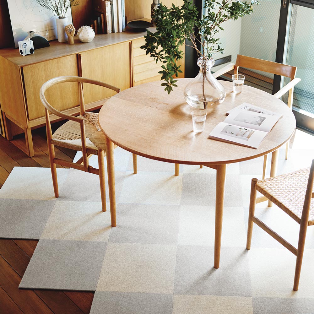 フローリングなどの上に置くだけでずれない、吸着タイプのタイルカーペット。