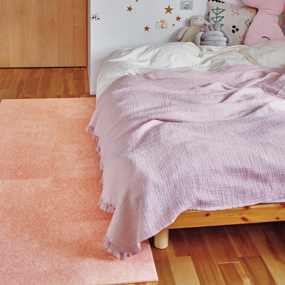 フローリングなどの上に置くだけでずれない、吸着タイプのタイルカーペット。