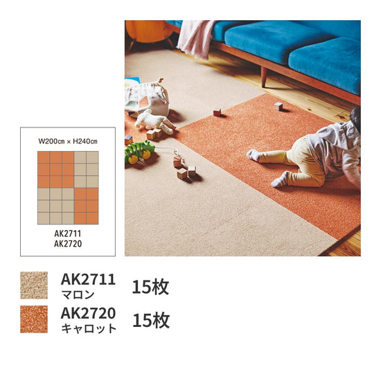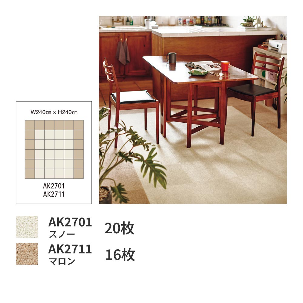 洗えるタイルカーペット 東リ ファブリックフロア アタック270 キャンバスファイン 【1枚単位で販売】 AK2711 マロン 吸着タイプ 床暖房対応