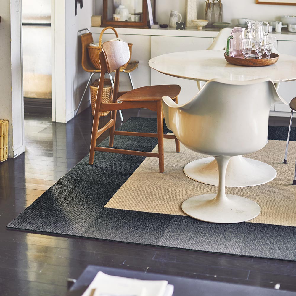 フローリングなどの上に置くだけでずれない、吸着タイプのタイルカーペット。