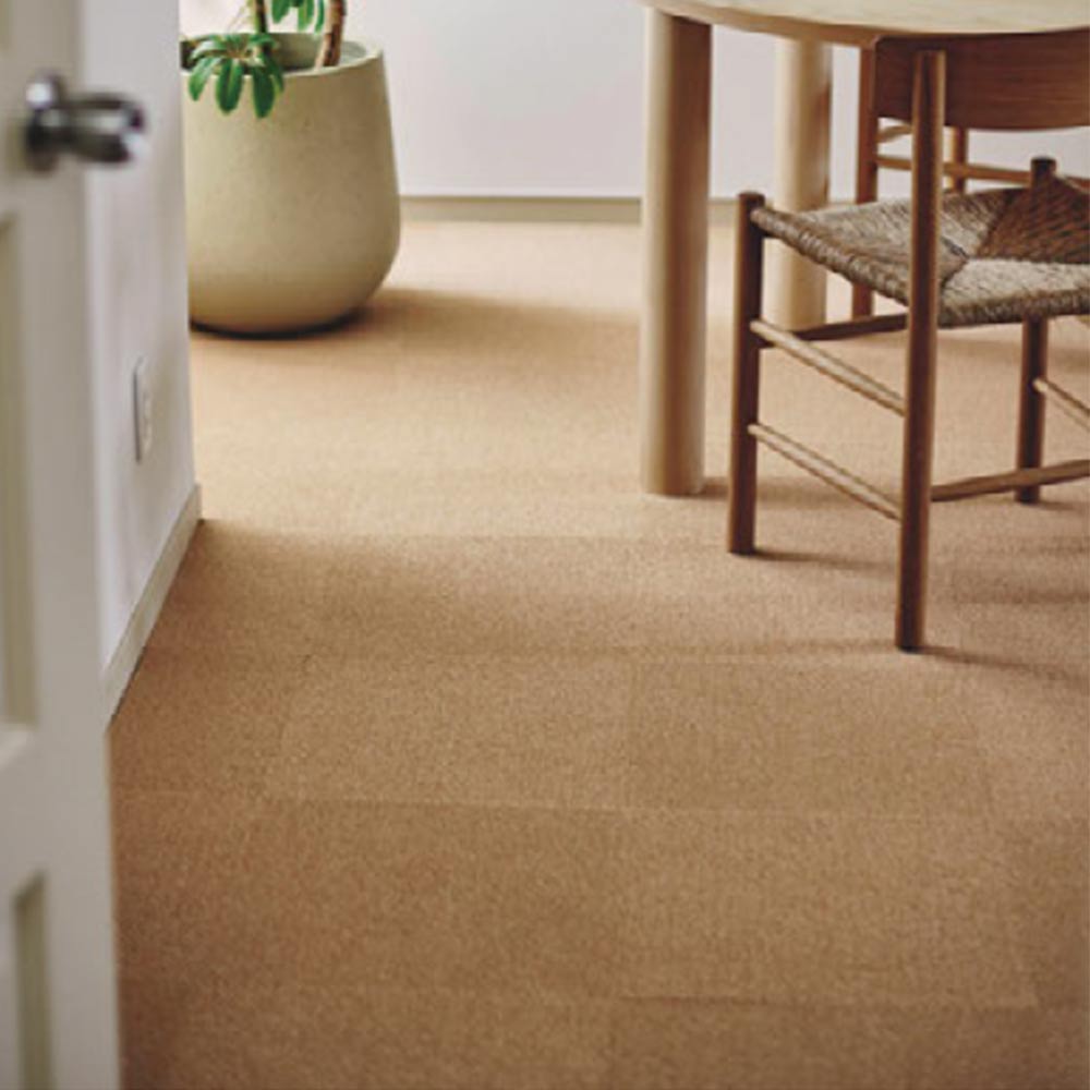 フローリングなどの上に置くだけでずれない、吸着タイプのタイルカーペット。