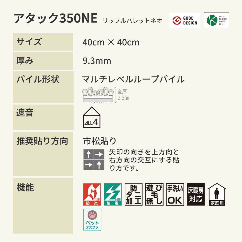 洗えるタイルカーペット 東リ ファブリックフロア アタック350NE リップルパレットネオ 【1ケース(10枚入)単位で販売】 AK3572 みかん 吸着タイプ 床暖房対応 遮音