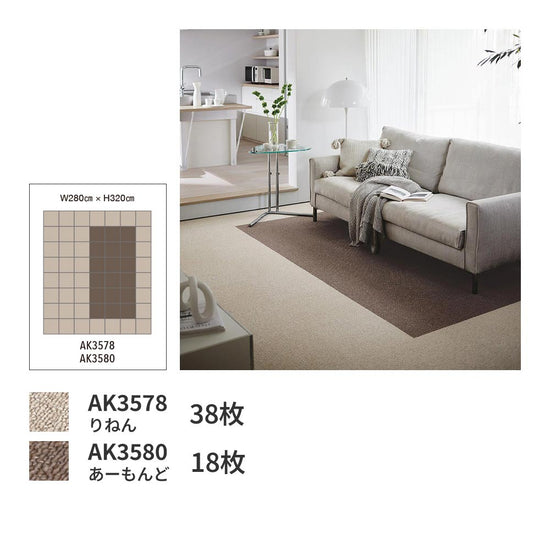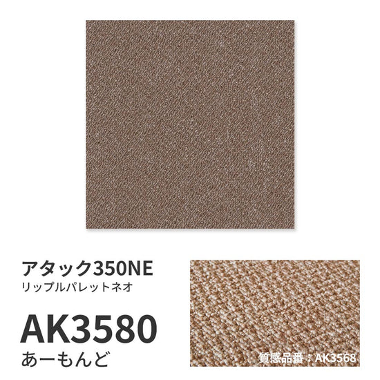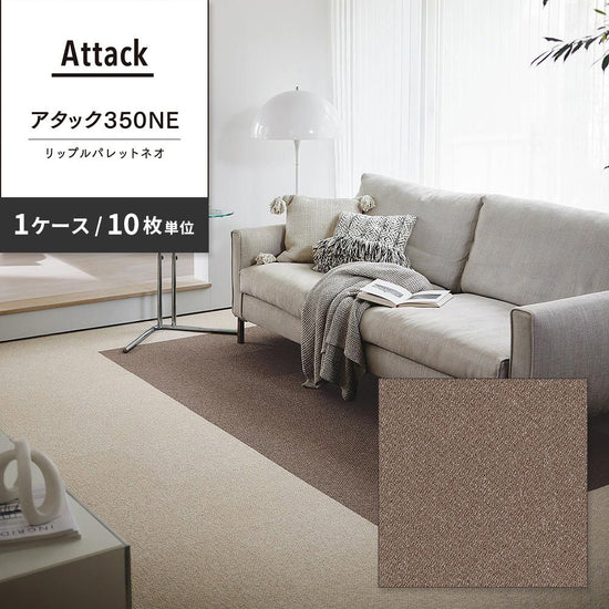 洗えるタイルカーペット 東リ ファブリックフロア アタック350NE リップルパレットネオ 【1ケース(10枚入)単位で販売】 AK3580 あーもんど 吸着タイプ 床暖房対応 遮音