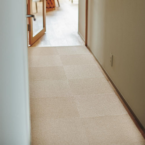 フローリングなどの上に置くだけでずれない、吸着タイプのタイルカーペット。