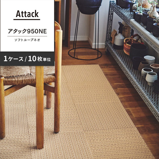 洗えるタイルカーペット 東リ ファブリックフロア アタック950NE ソフトループネオ 【1ケース(10枚入)単位で販売】 AK9555 キャラメルクリーム 吸着タイプ 床暖房対応