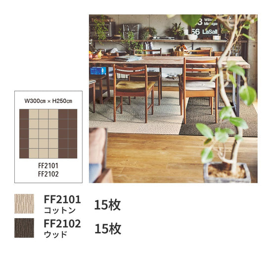 洗えるタイルカーペット 東リ ファブリックフロア スクエア2100 サイザループ 【1枚単位で販売】 FF2101 コットン 吸着タイプ 床暖房対応