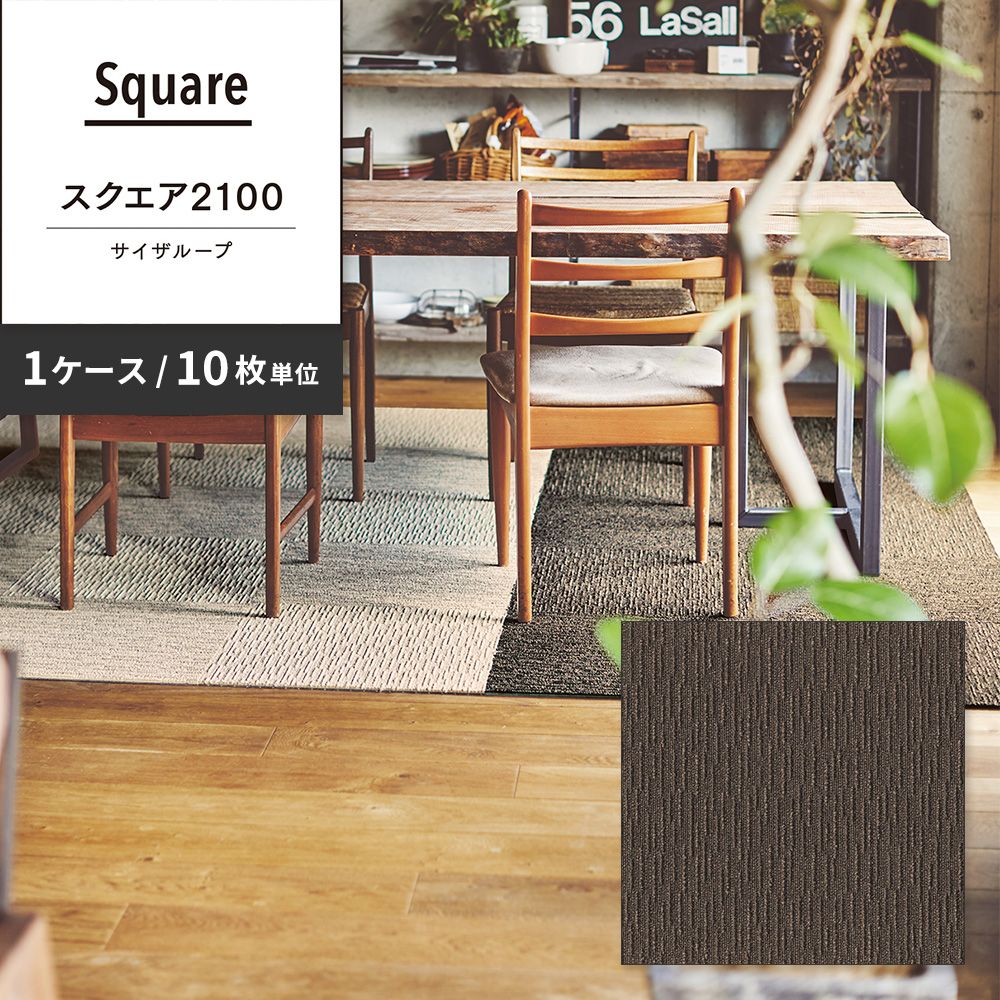 洗えるタイルカーペット 東リ ファブリックフロア スクエア2100 サイザループ 【1ケース(10枚入)単位で販売】 FF2102 ウッド 吸着タイプ 床暖房対応