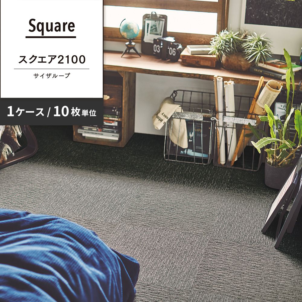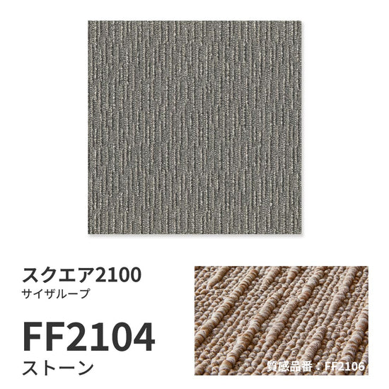 洗えるタイルカーペット 東リ ファブリックフロア スクエア2100 サイザループ 【1ケース(10枚入)単位で販売】 FF2104 ストーン 吸着タイプ 床暖房対応