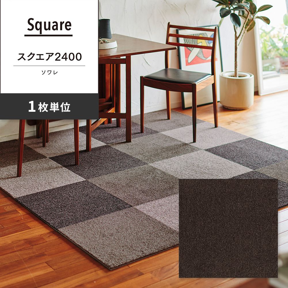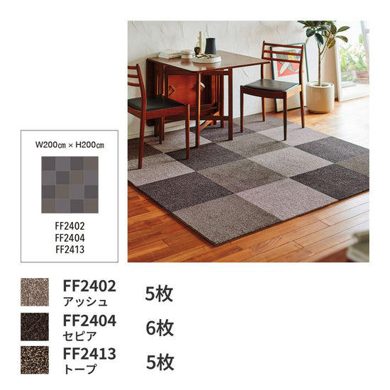 洗えるタイルカーペット 東リ ファブリックフロア スクエア2400 ソワレ 【1枚単位で販売】 FF2404 セピア 吸着タイプ 床暖房対応