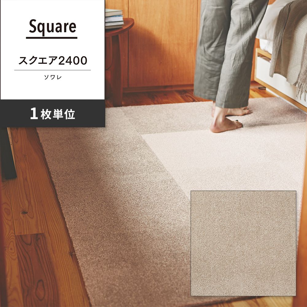 洗えるタイルカーペット 東リ ファブリックフロア スクエア2400 ソワレ 【1枚単位で販売】 FF2405 グレージュ 吸着タイプ 床暖房対応