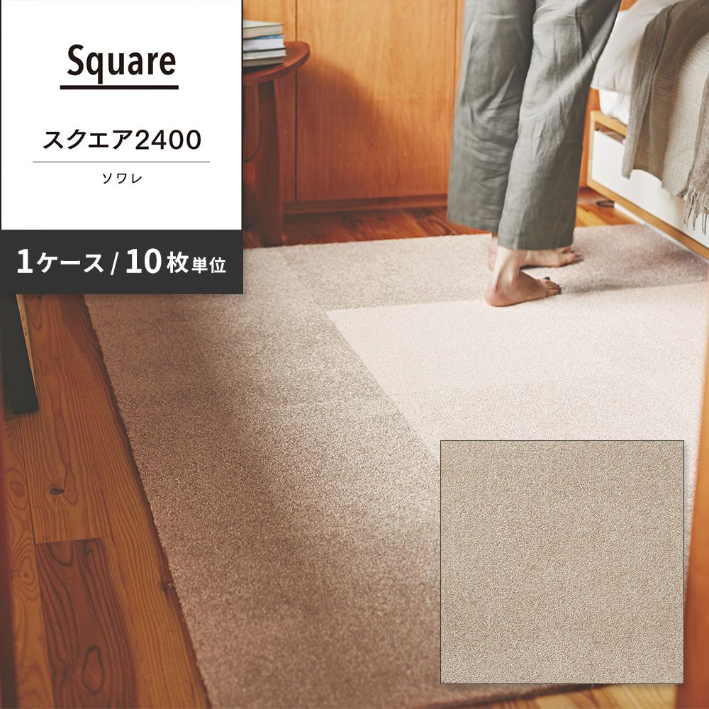 洗えるタイルカーペット 東リ ファブリックフロア スクエア2400 ソワレ 【1ケース(10枚入)単位で販売】 FF2405 グレージュ 吸着タイプ 床暖房対応