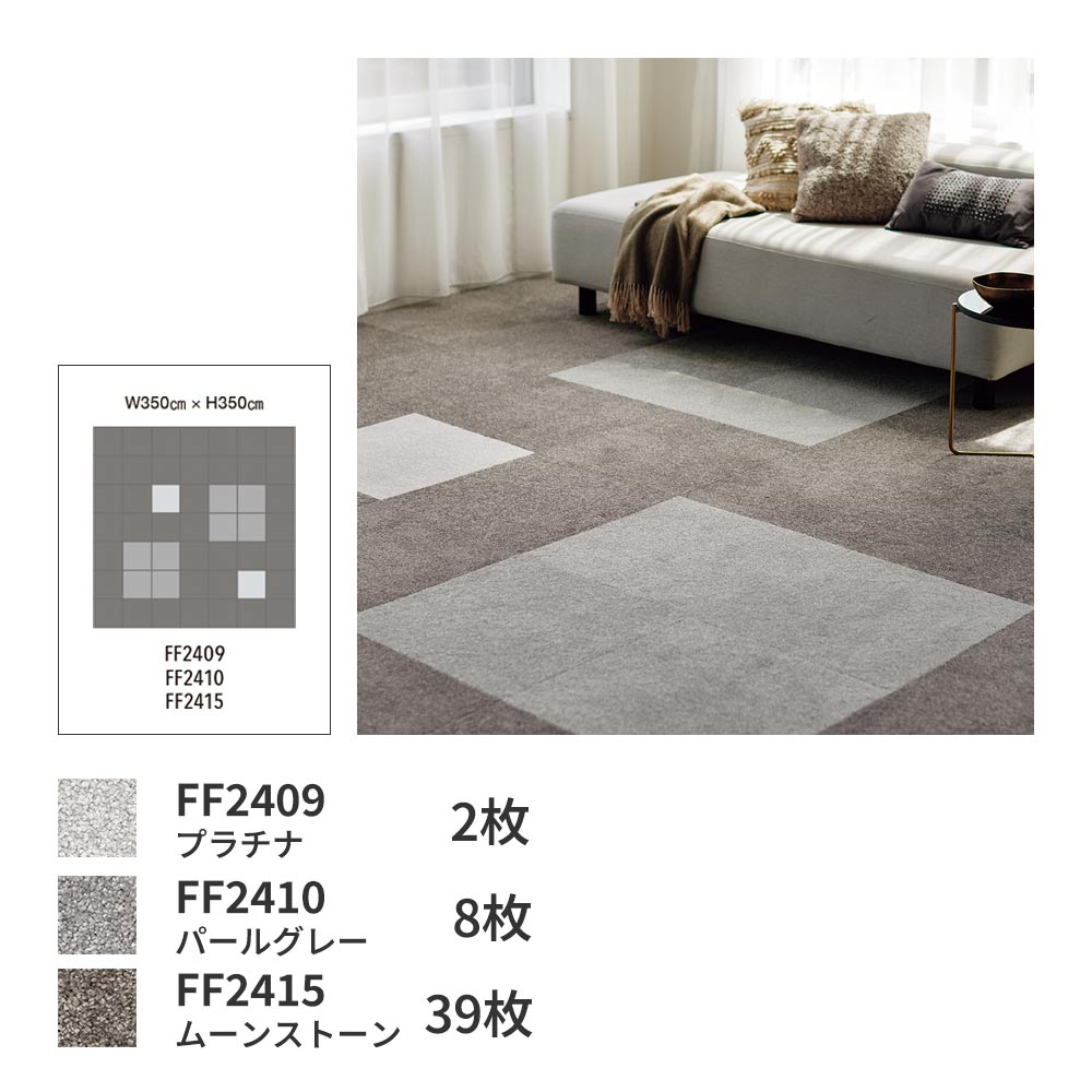 洗えるタイルカーペット 東リ ファブリックフロア スクエア2400 ソワレ 【1ケース(10枚入)単位で販売】 FF2409 プラチナ 吸着タイプ 床暖房対応