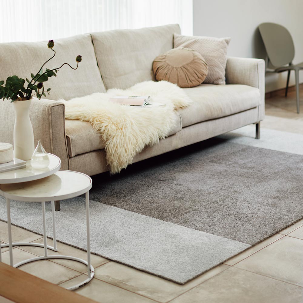 フローリングなどの上に置くだけでずれない、吸着タイプのタイルカーペット。