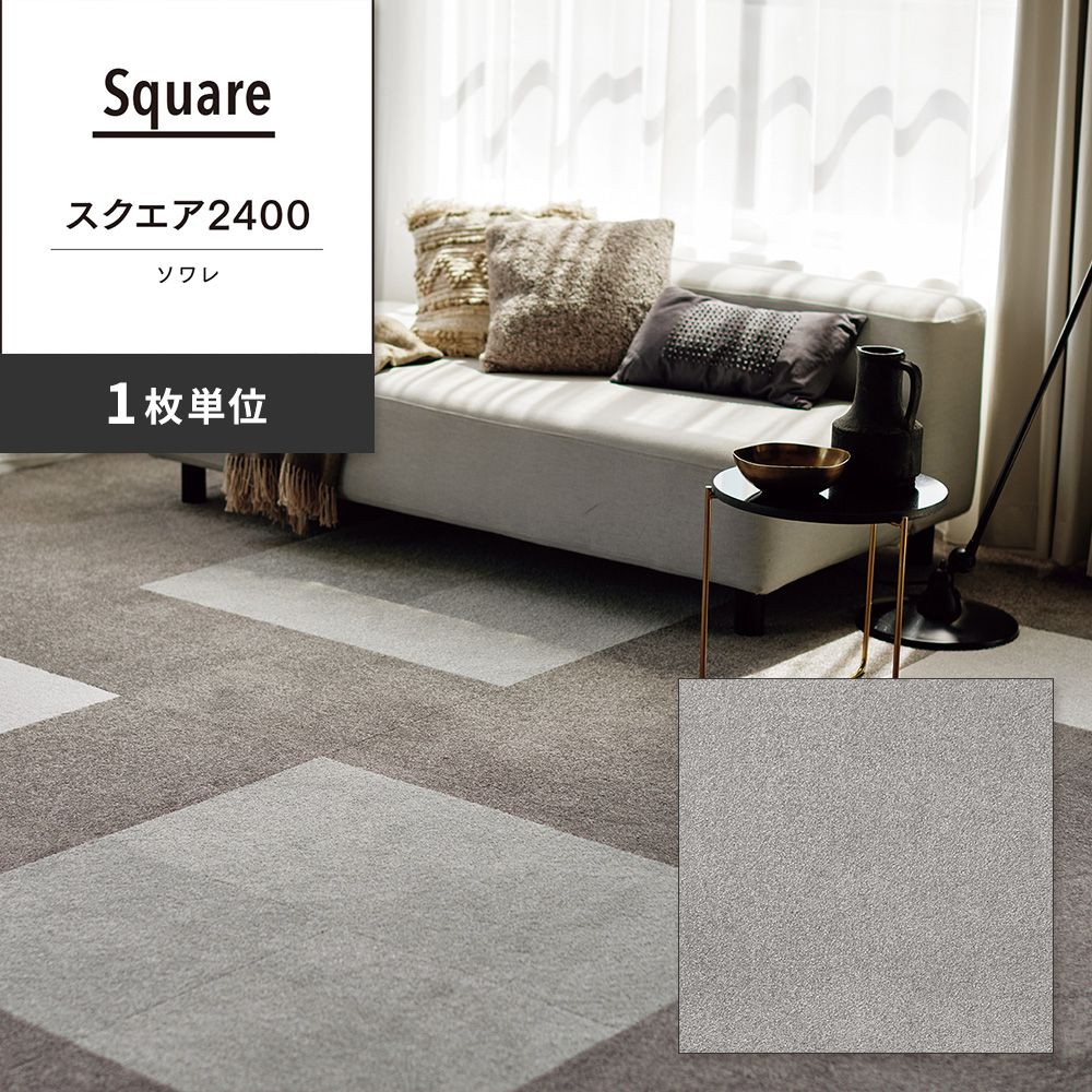 洗えるタイルカーペット 東リ ファブリックフロア スクエア2400 ソワレ 【1枚単位で販売】 FF2410 パールグレー 吸着タイプ 床暖房対応