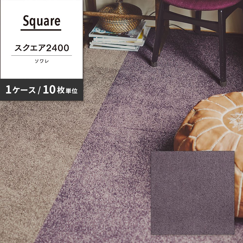 洗えるタイルカーペット 東リ ファブリックフロア スクエア2400 ソワレ 【1ケース(10枚入)単位で販売】 FF2411 モーヴ 吸着タイプ 床暖房対応