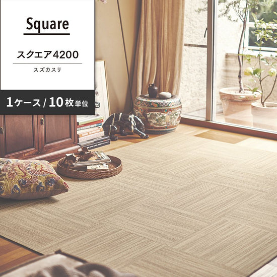 洗えるタイルカーペット 東リ ファブリックフロア スクエア4200 スズカスリ 【1ケース(10枚入)単位で販売】 FF4201 白茶絣 吸着タイプ 床暖房対応
