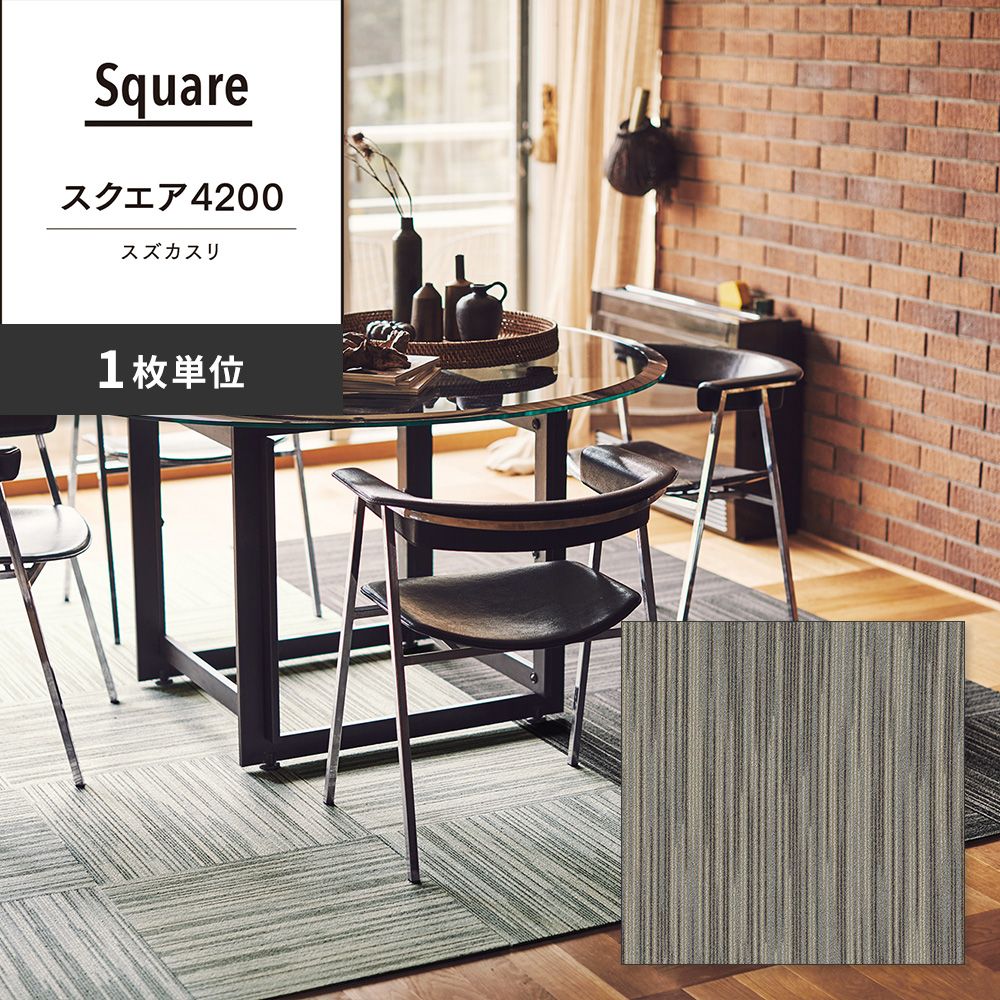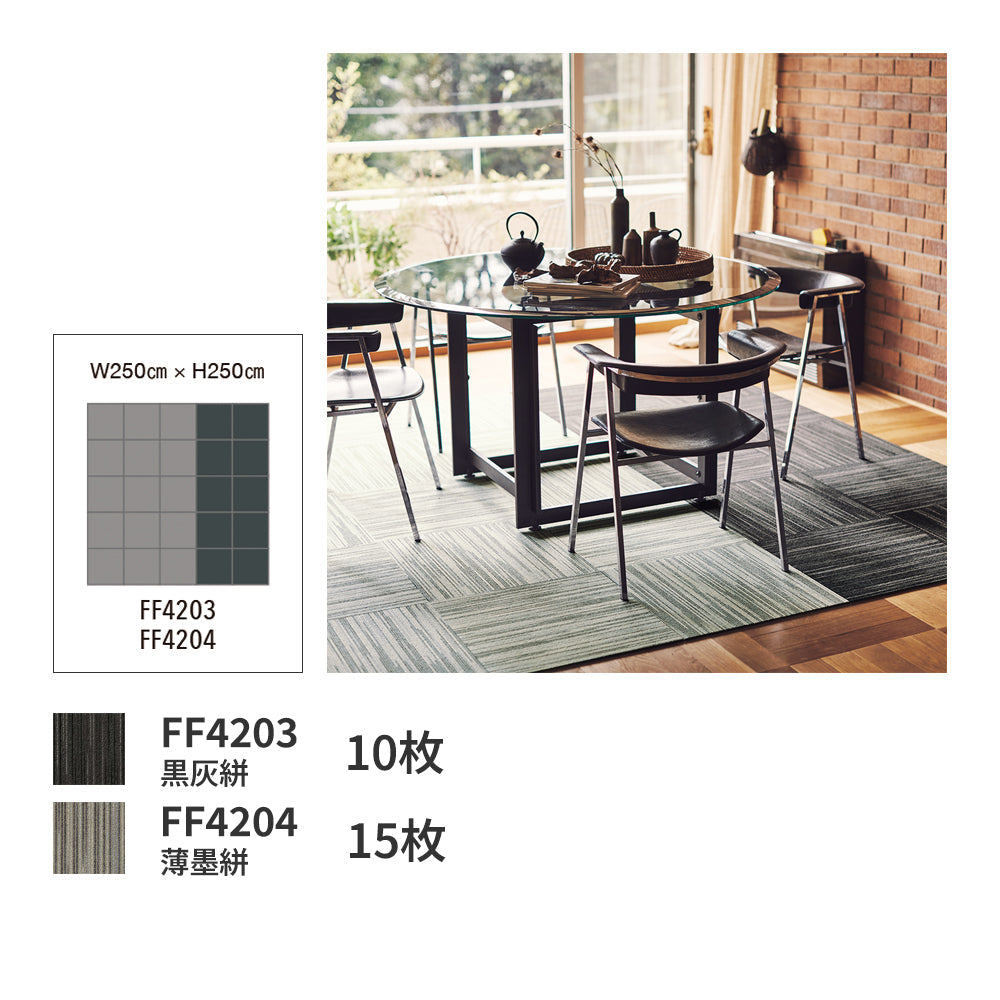 洗えるタイルカーペット 東リ ファブリックフロア スクエア4200 スズカスリ 【1枚単位で販売】 FF4204 薄墨絣 吸着タイプ 床暖房対応