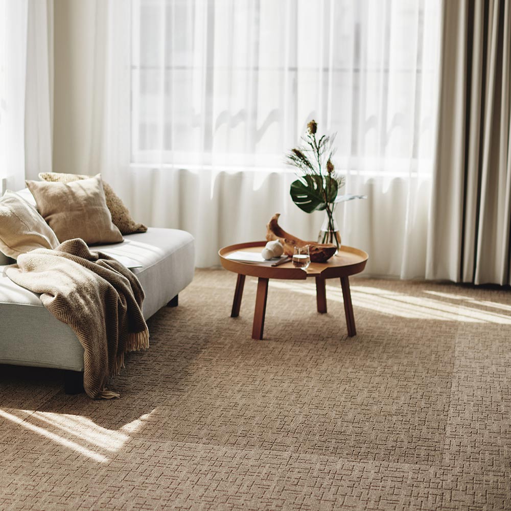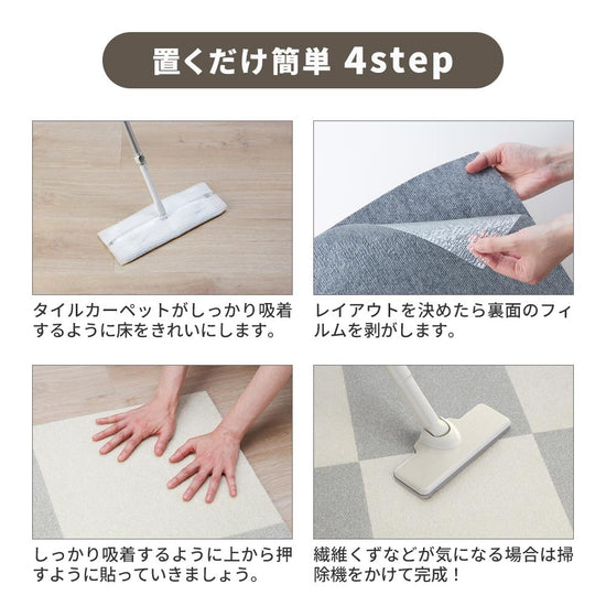 フローリングなどの上に置くだけでずれない、吸着タイプのタイルカーペット。