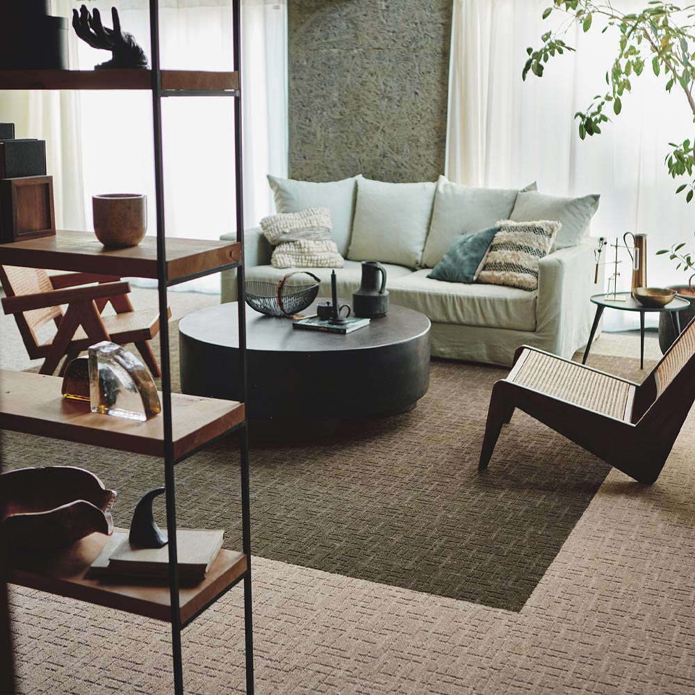 カットパイルと目の詰まったループパイルによる、表情豊かなテクスチャー。