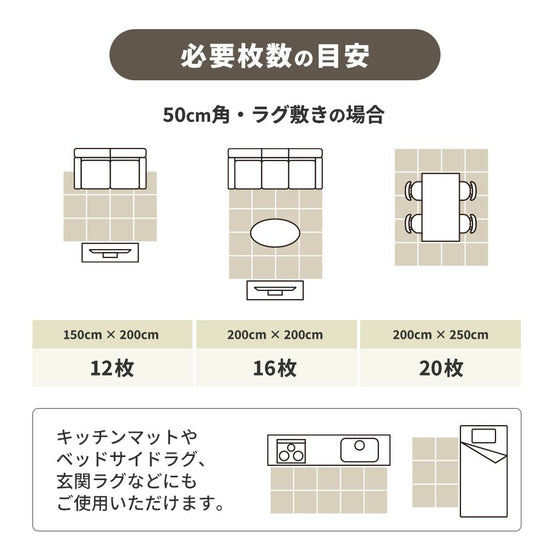 フローリングなどの上に置くだけでずれない、吸着タイプのタイルカーペット。