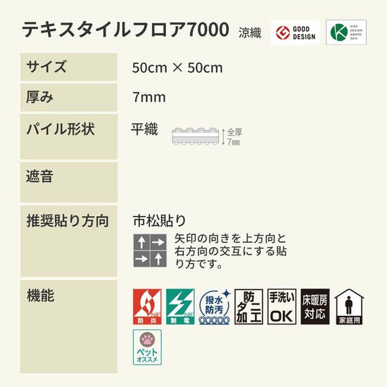洗えるタイルカーペット 東リ ファブリックフロア テキスタイルフロア7000 涼織 【1ケース(10枚入)単位で販売】 FF7001 きなり 吸着タイプ 床暖房対応
