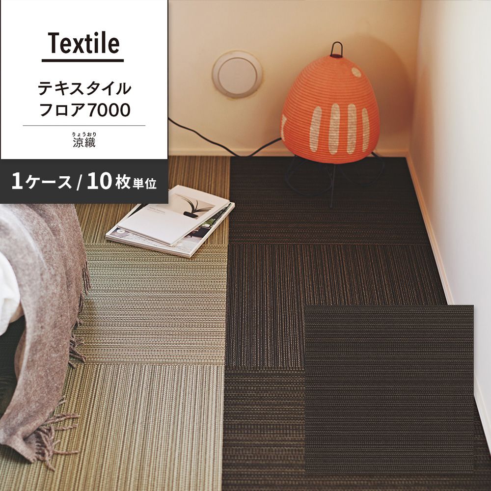 洗えるタイルカーペット 東リ ファブリックフロア テキスタイルフロア7000 涼織 【1ケース(10枚入)単位で販売】 FF7005 すすたけ 吸着タイプ 床暖房対応