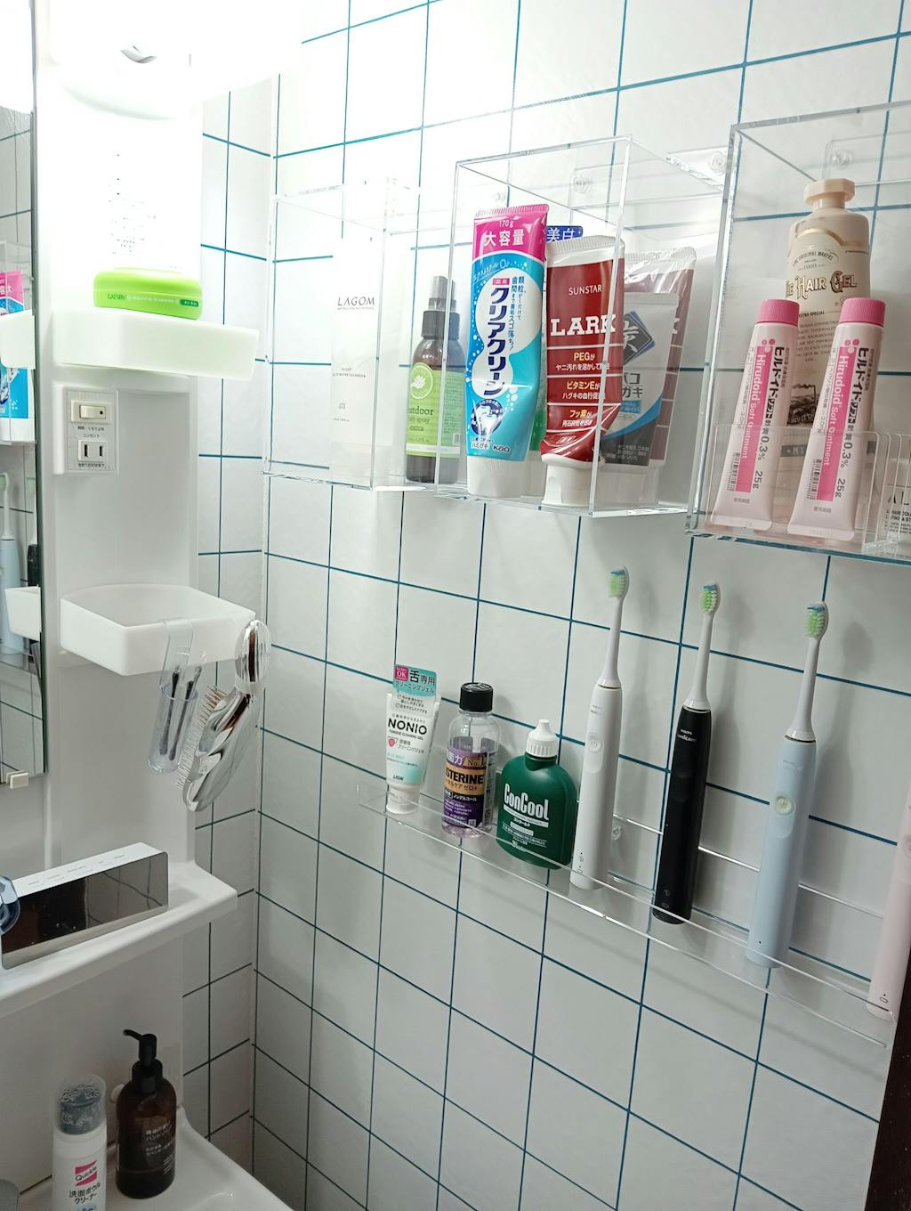 海外インテリアみたいなカラータイル×カラー目地デザイン。