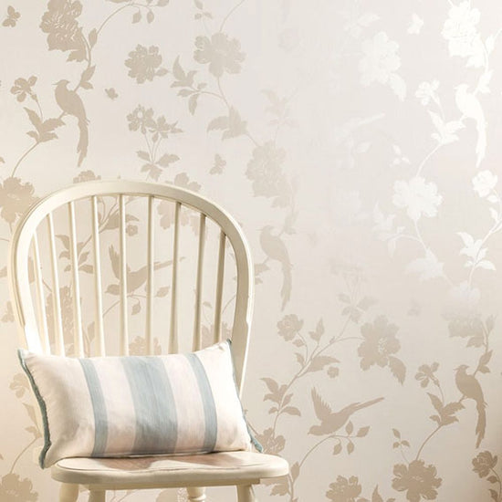 『ファーレイ』は、ローラアシュレイのアンティークファブリックからデザインされました。スケールが大きく、鳥や蝶、植物のモチーフが特徴となっています。