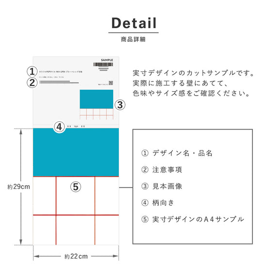 【サンプル】はがせる壁紙 のりなしタイプ カラフルPOPタイル NKH-CP04 ブルー×レッド目地