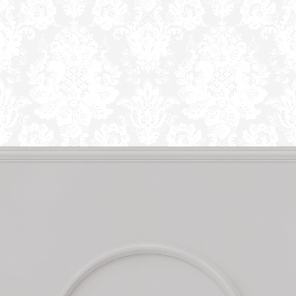 ダマスク柄壁紙に腰壁のデザインを合わせて。