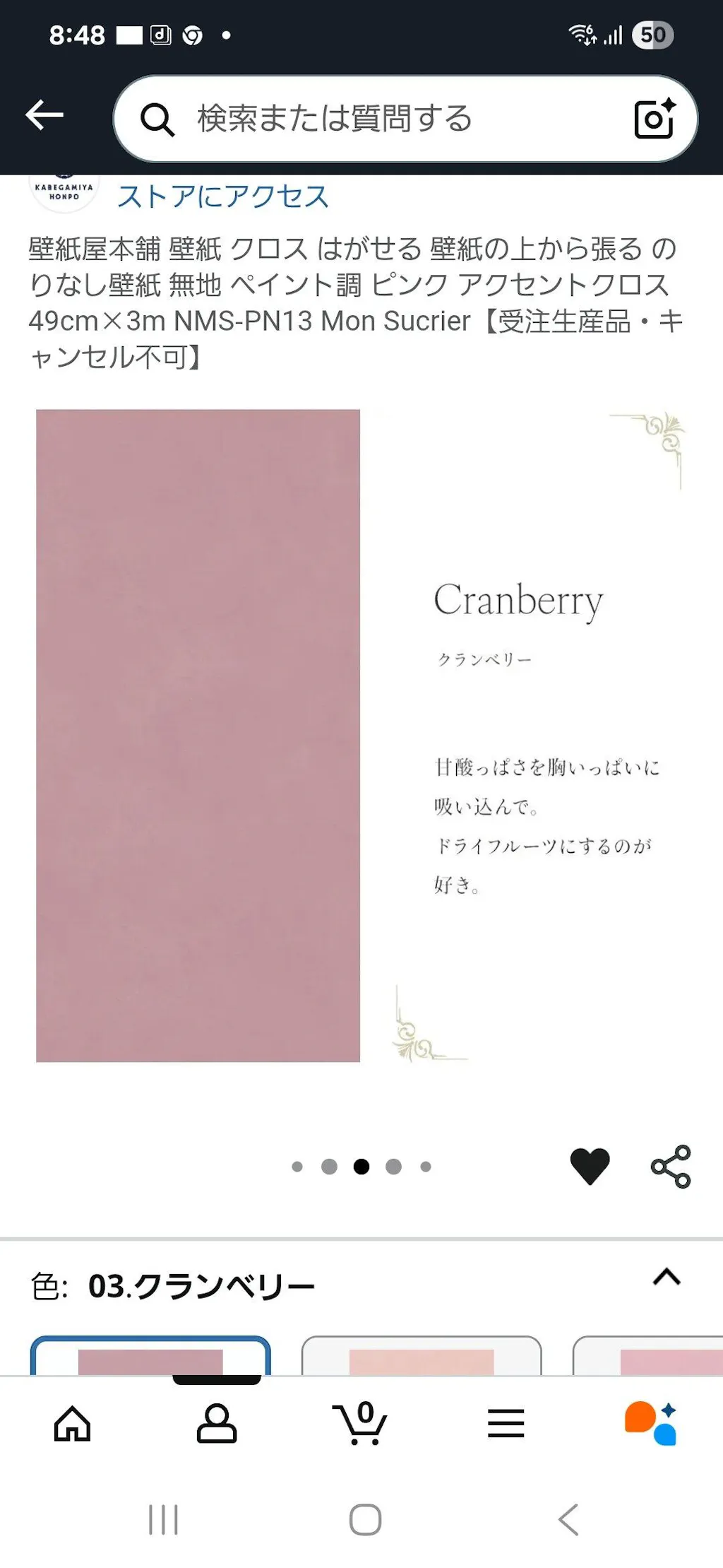 【サンプル】はがせる壁紙 のりなしタイプ Mon Sucrier プレーン NMS-PN13 クランベリー