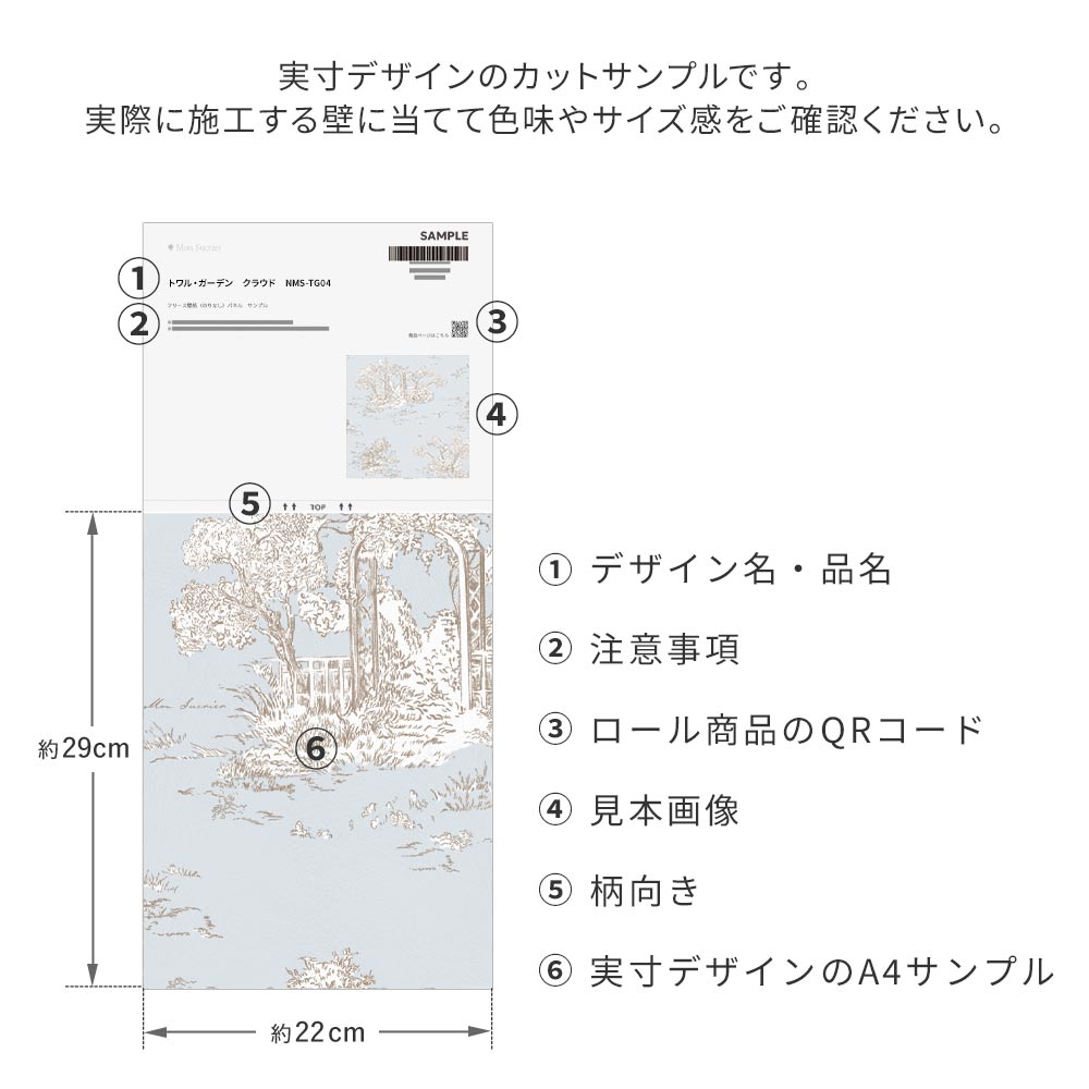 【サンプル】はがせる壁紙 のりなしタイプ Mon Sucrier トワル柄 トワル・ガーデン NMS-TG06 シャトー