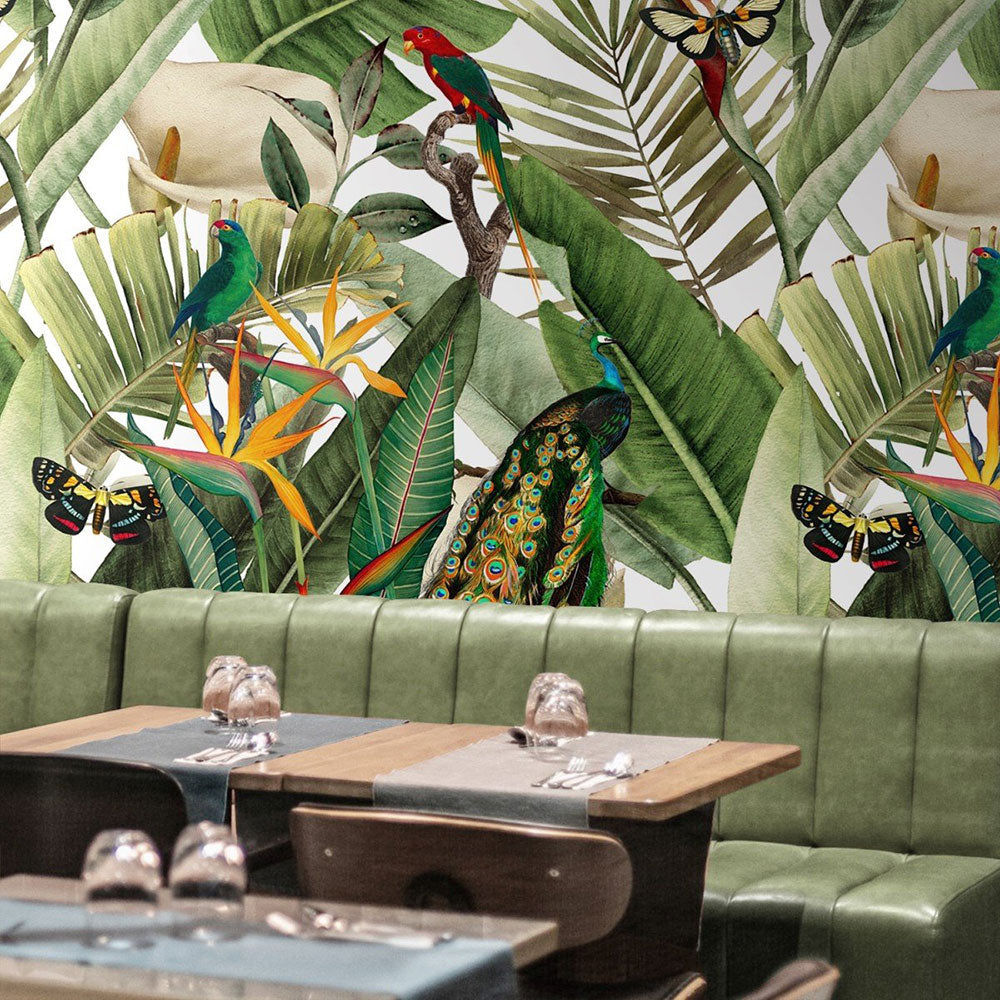【サンプル】はがせるミューラル壁紙 のりなし Flora and Fauna White NSO-G00168
