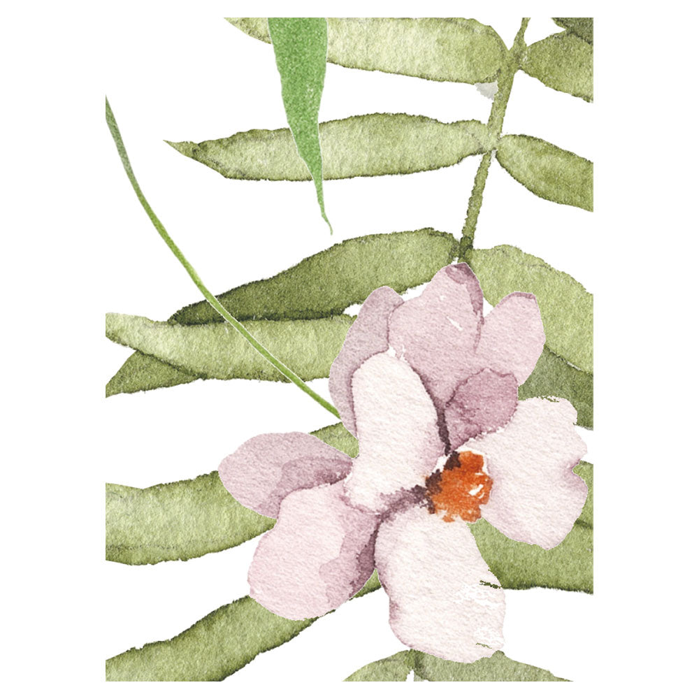 明るい印象の上からトロピカルな植物が垂れ下がったデザイン