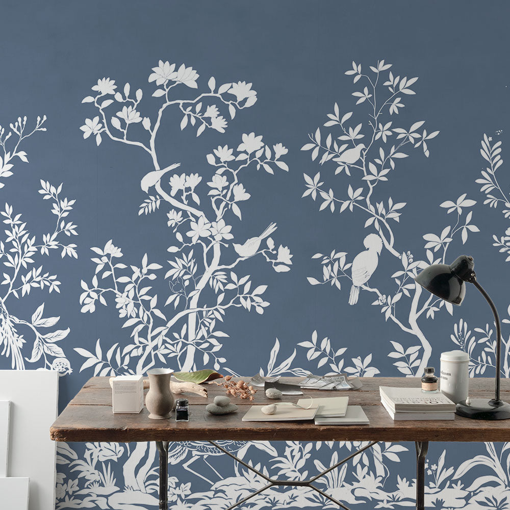 【サンプル】はがせるミューラル壁紙 のりなし Chinoisere Silhouette Blue NSO-G00259