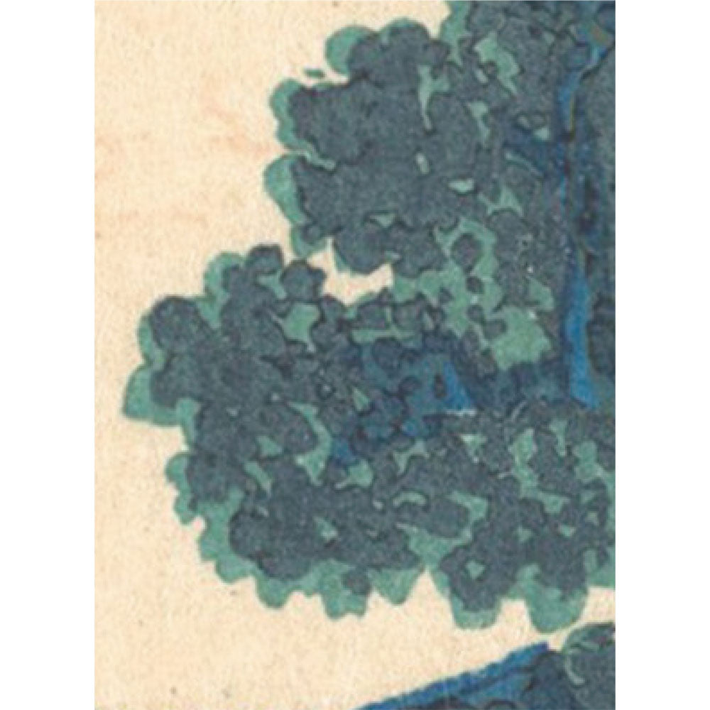 七里ヶ浜は、神奈川県鎌倉市に位置する海岸。夕方の時間帯を描いた作品で、逆光で周囲の島々が暗くなっていく様子を表現している。