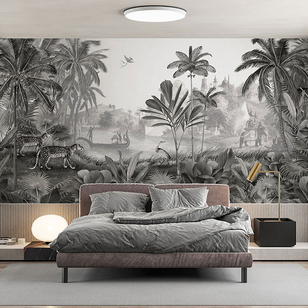 【サンプル】はがせるミューラル壁紙 のりなし Sir Edward Leopard Landscape Black and White W13374