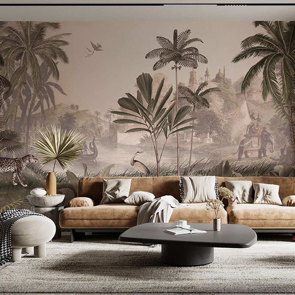【サンプル】はがせるミューラル壁紙 のりなし Sir Edward Leopard Landscape Sepia W13376
