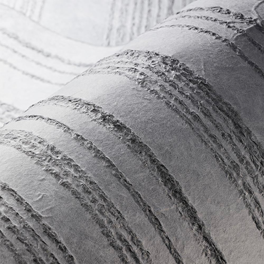 和紙を漉いている最中に水滴を落とし紋様を作っていく落水という技術でつくられています。立体感あるシンプルなストライプがモダンさを感じさせる商品です。