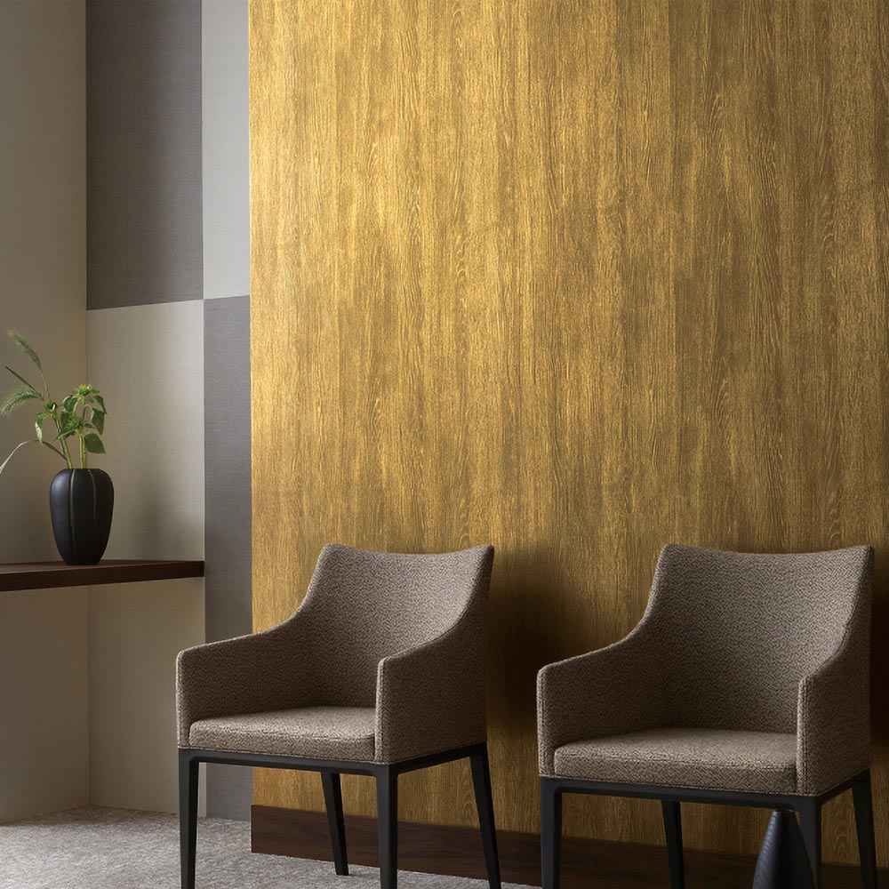 アルミ箔に木目柄のプリント表現を施した壁紙です。
