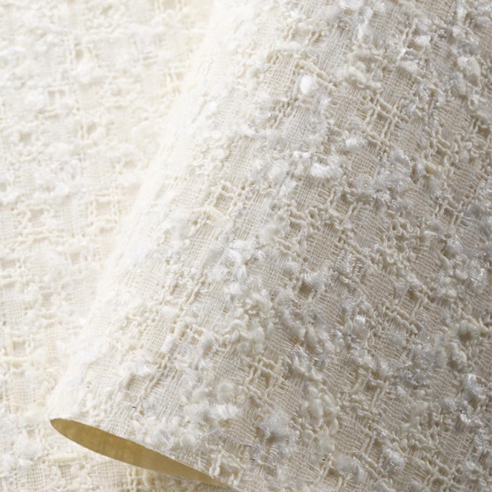 ファッションテキスタイルの産地である尾州で織られた生地を使用した織物壁紙です。