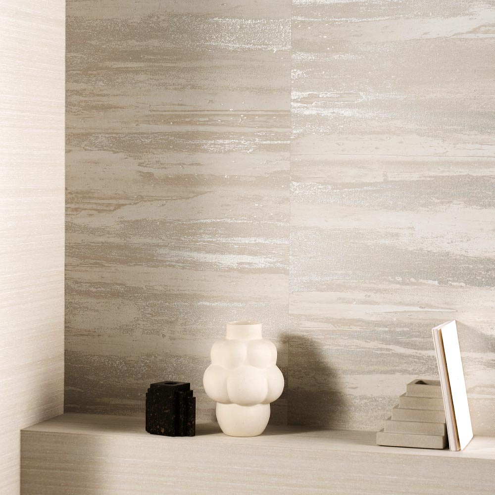 製法にこだわり、モダンで高級感あるテクスチャーを持つビニル壁紙です。
